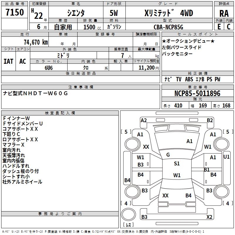TOYOTA SIENTA - лот 7150