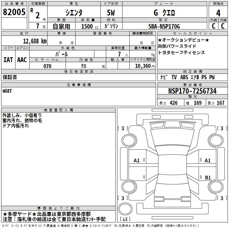 TOYOTA SIENTA - лот 82005
