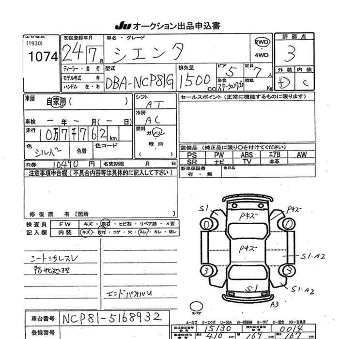 TOYOTA SIENTA - лот 1074