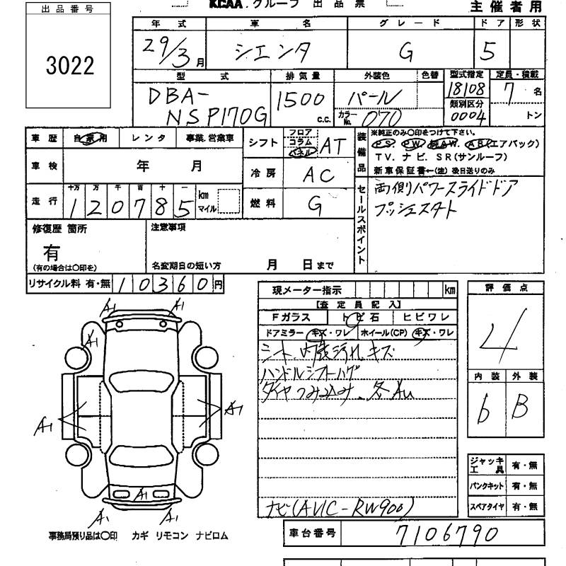 TOYOTA SIENTA - лот 3022