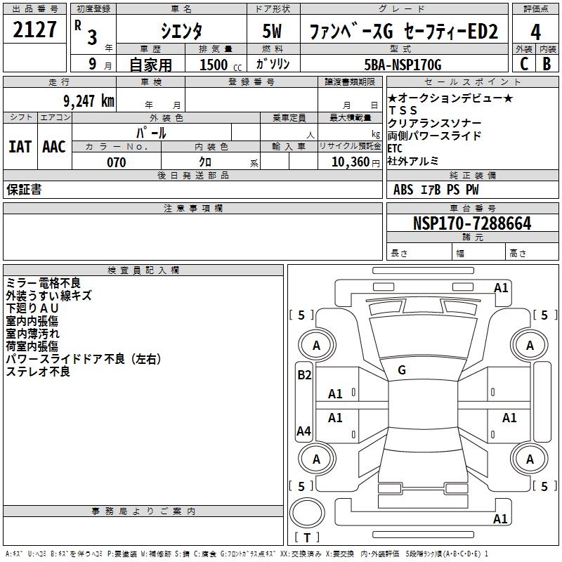 TOYOTA SIENTA - лот 2127
