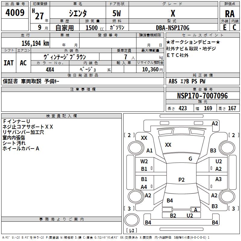 TOYOTA SIENTA - лот 4009