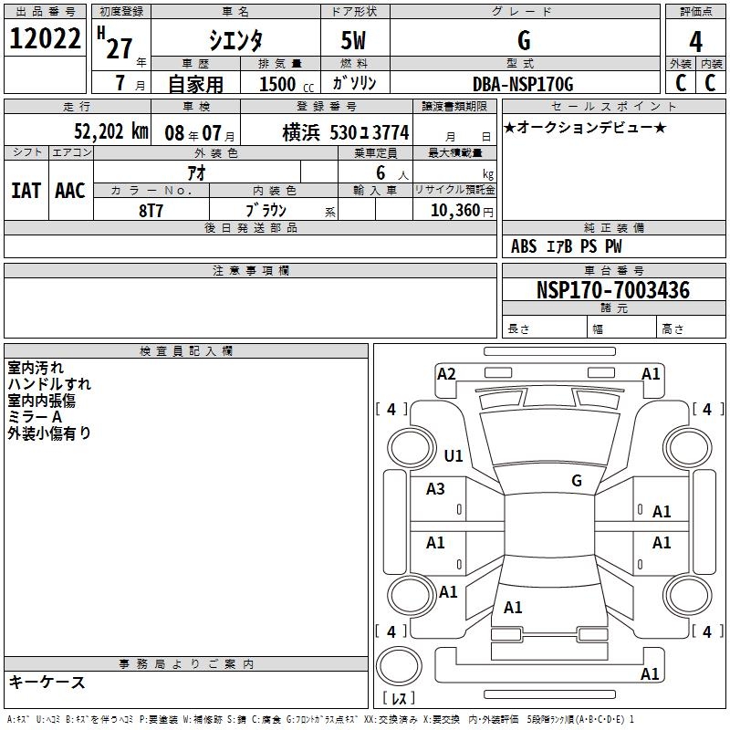 TOYOTA SIENTA - лот 12022