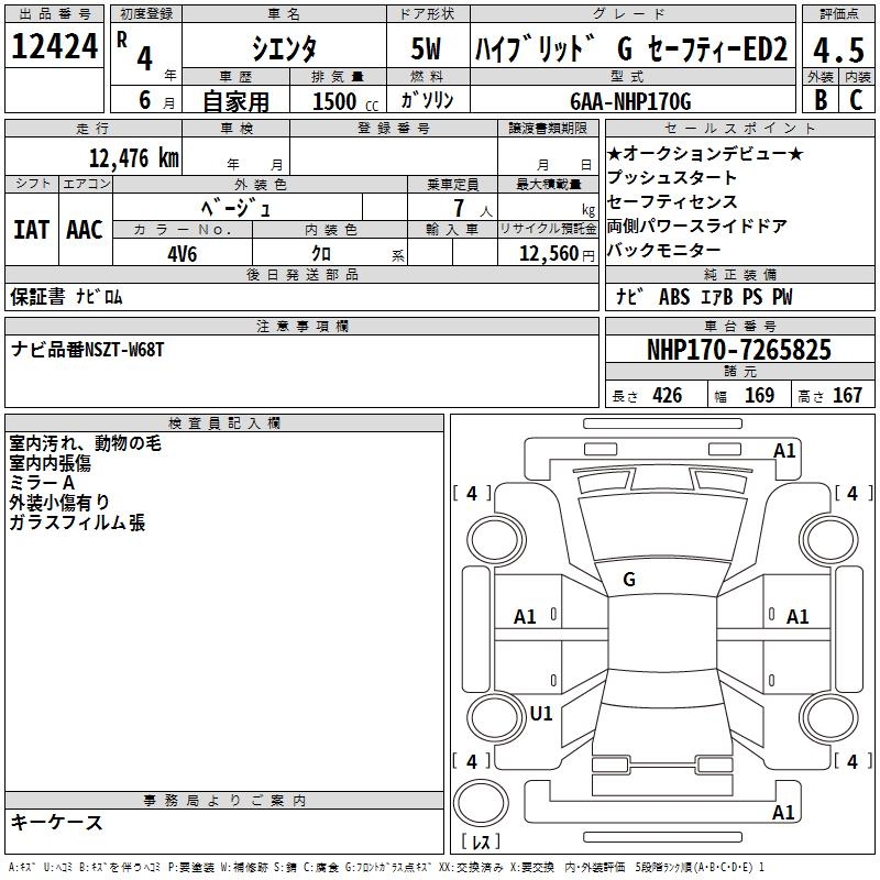 TOYOTA SIENTA - лот 12424