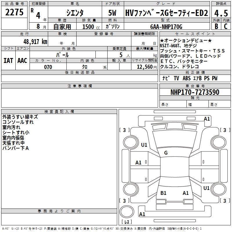 TOYOTA SIENTA - лот 2275