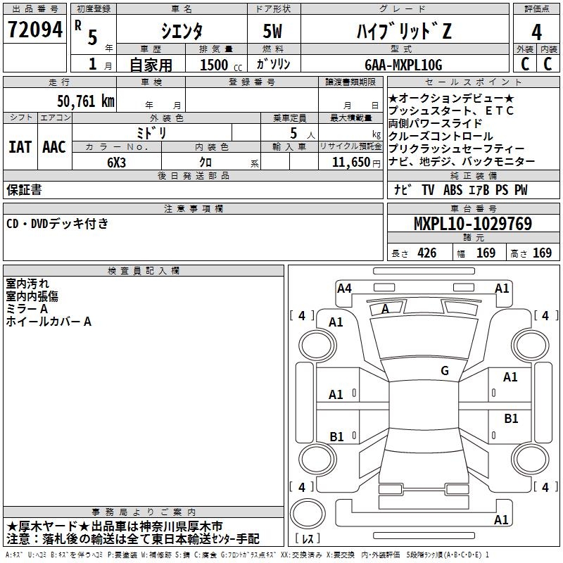 TOYOTA SIENTA - лот 72094