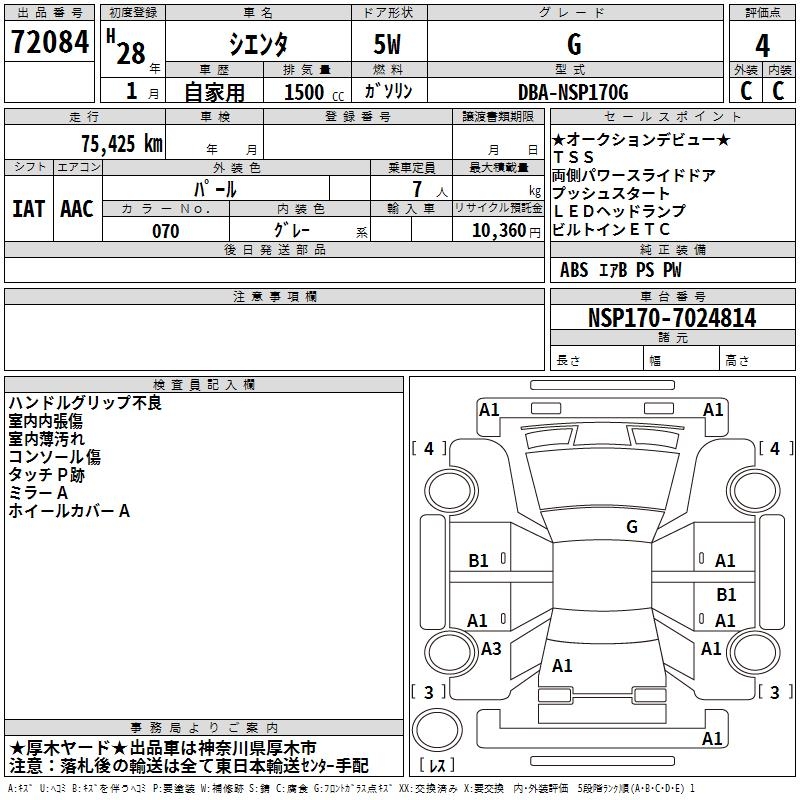 TOYOTA SIENTA - лот 72084