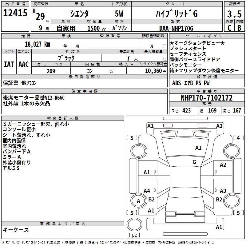 TOYOTA SIENTA - лот 12415