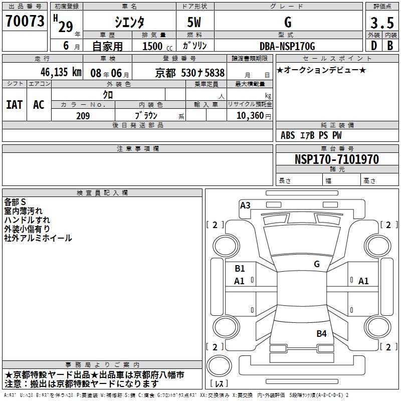 TOYOTA SIENTA - лот 70073