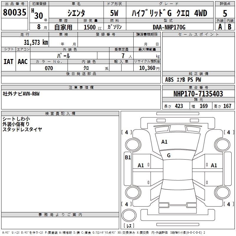 TOYOTA SIENTA - лот 80035