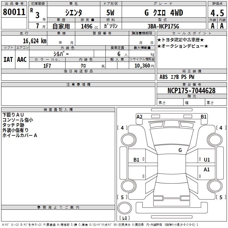 TOYOTA SIENTA - лот 80011
