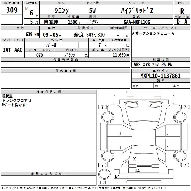 TOYOTA SIENTA - лот 309