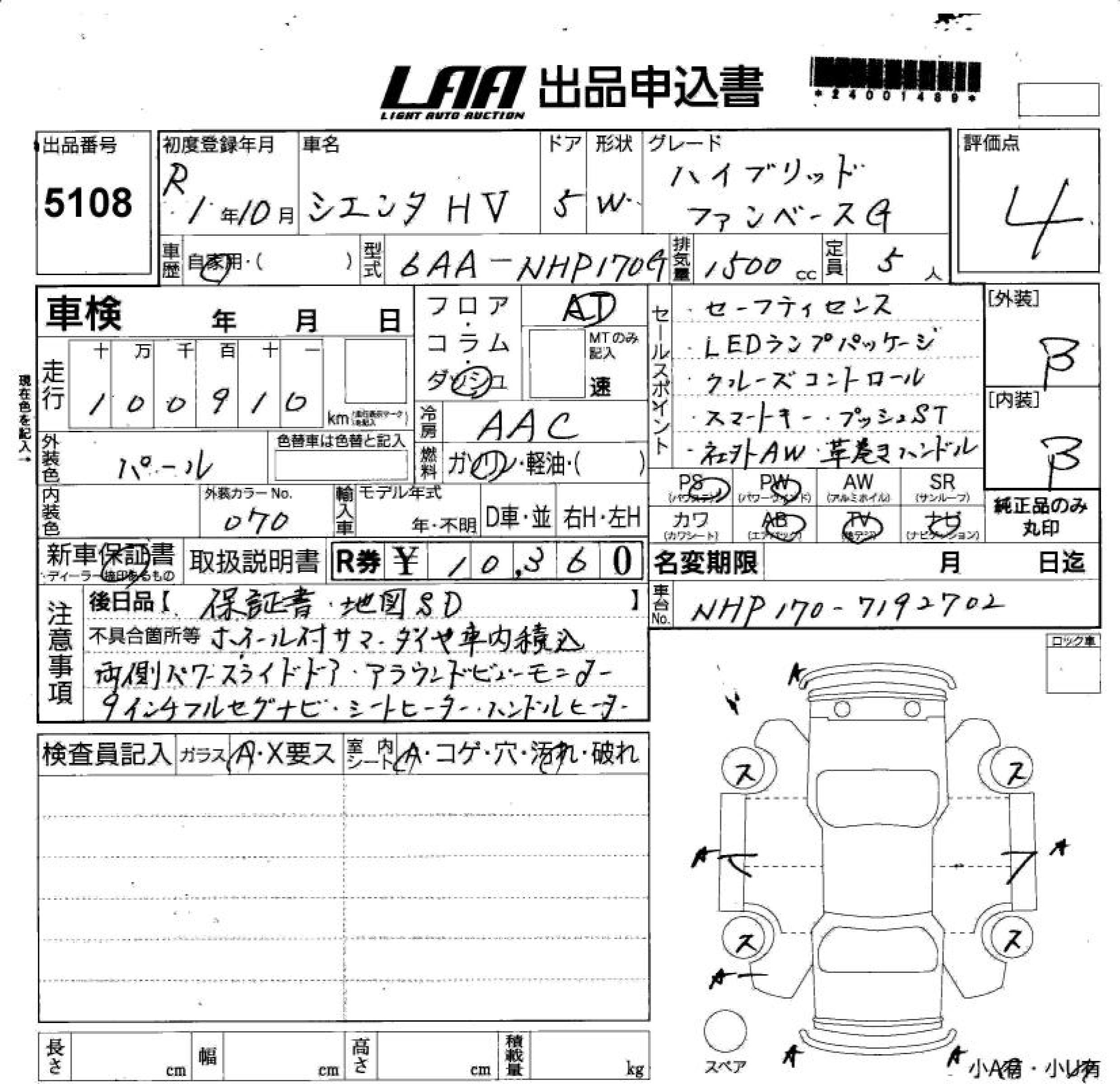 TOYOTA SIENTA - лот 5108