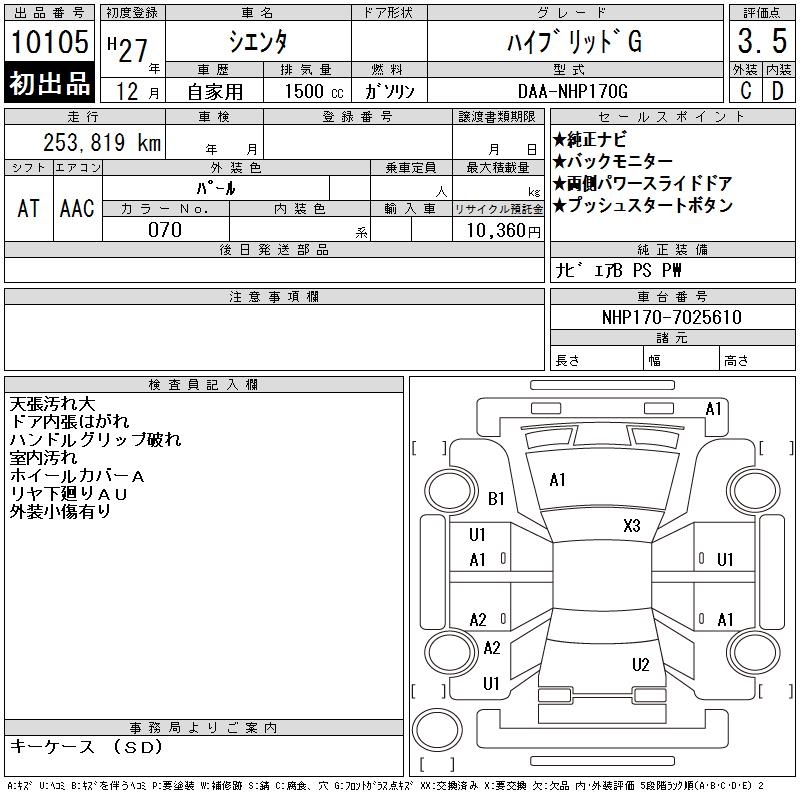 TOYOTA SIENTA - лот 10105