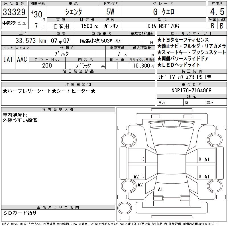 TOYOTA SIENTA - лот 33329