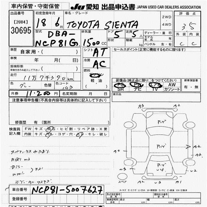TOYOTA SIENTA - лот 30695