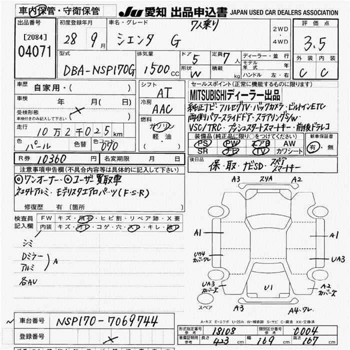 TOYOTA SIENTA - лот 4071