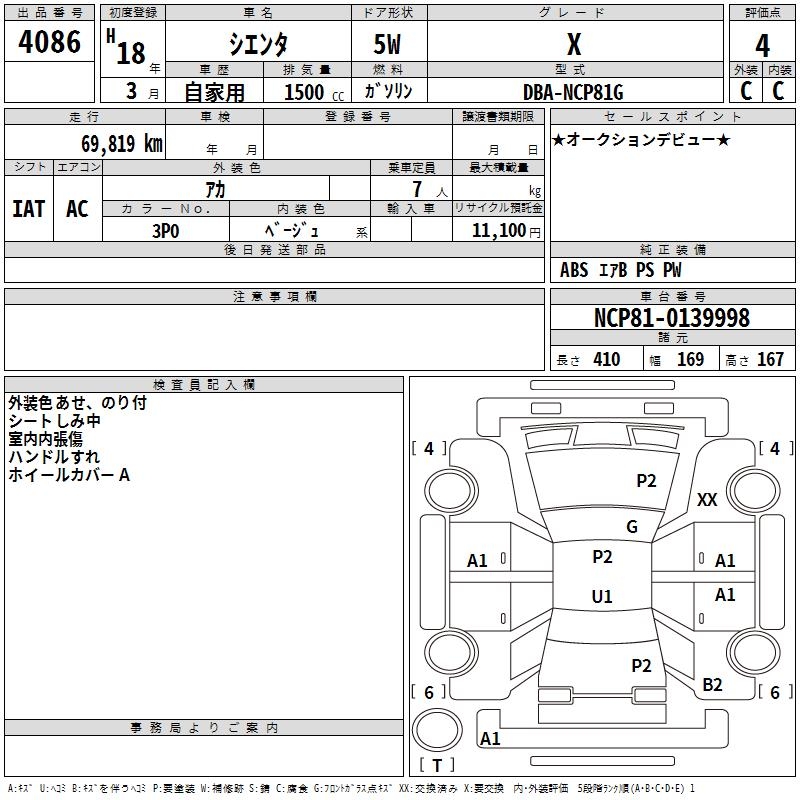 TOYOTA SIENTA - лот 4086