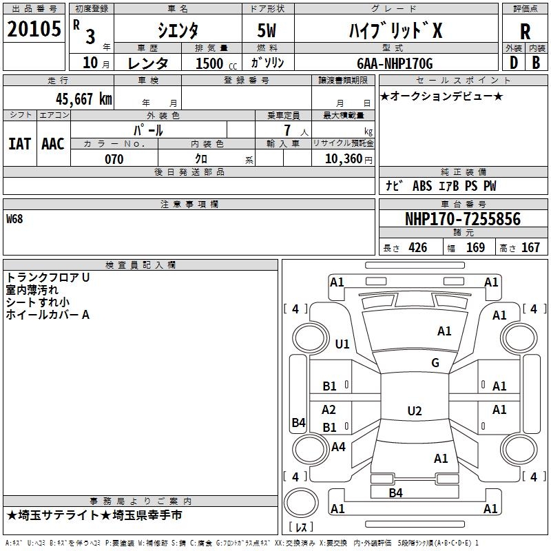 TOYOTA SIENTA - лот 20105