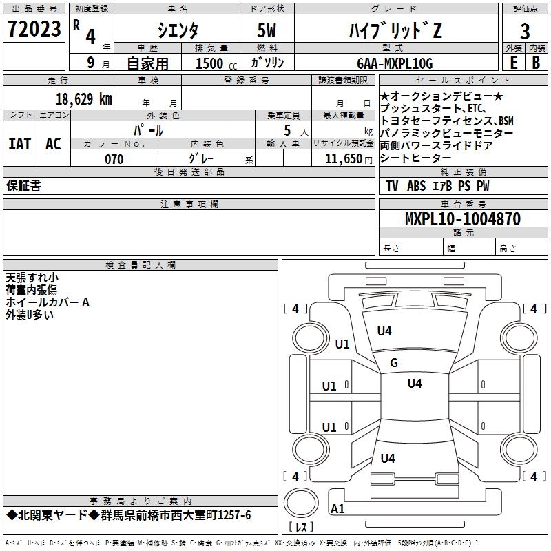 TOYOTA SIENTA - лот 72023