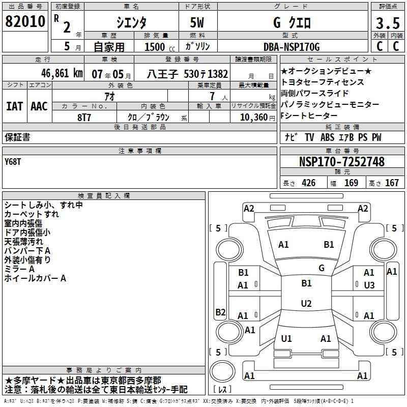 TOYOTA SIENTA - лот 82010