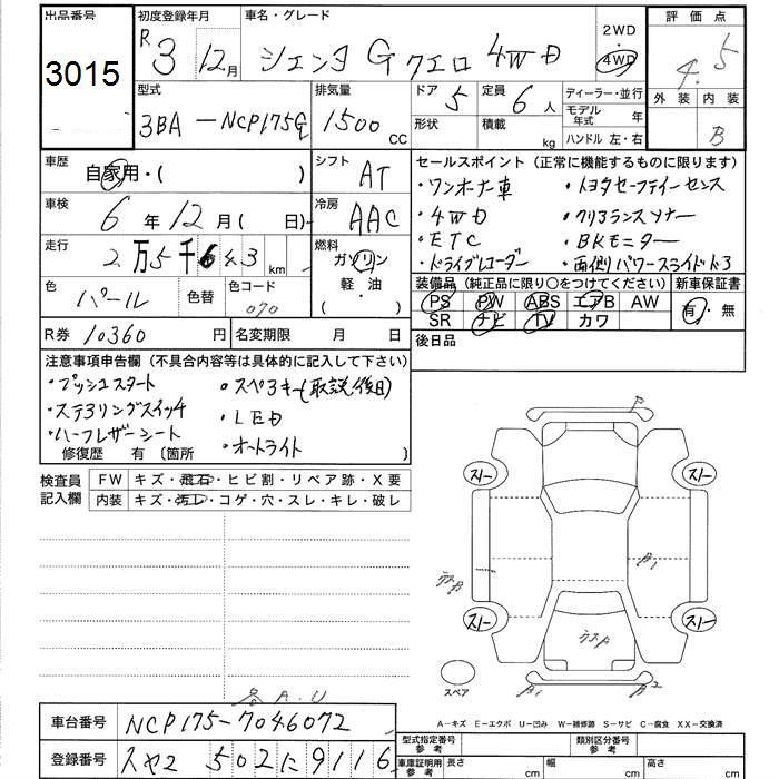 TOYOTA SIENTA - лот 3015
