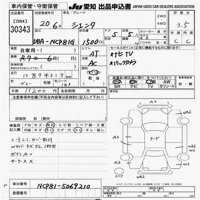 TOYOTA SIENTA - лот 30343
