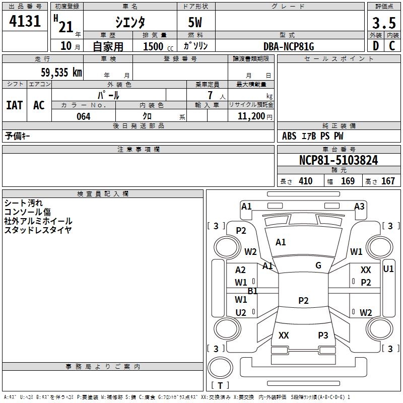 TOYOTA SIENTA - лот 4131