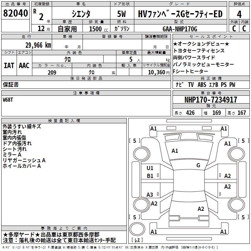 TOYOTA SIENTA - лот 82040