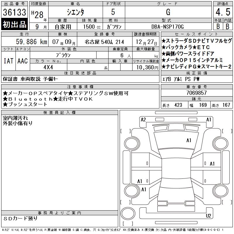 TOYOTA SIENTA - лот 36133