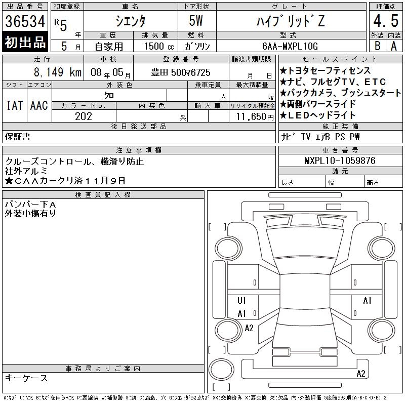 TOYOTA SIENTA - лот 36534