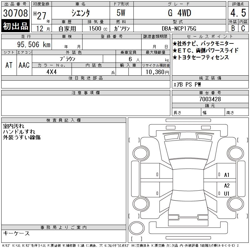 TOYOTA SIENTA - лот 30708