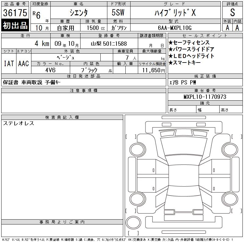 TOYOTA SIENTA - лот 36175