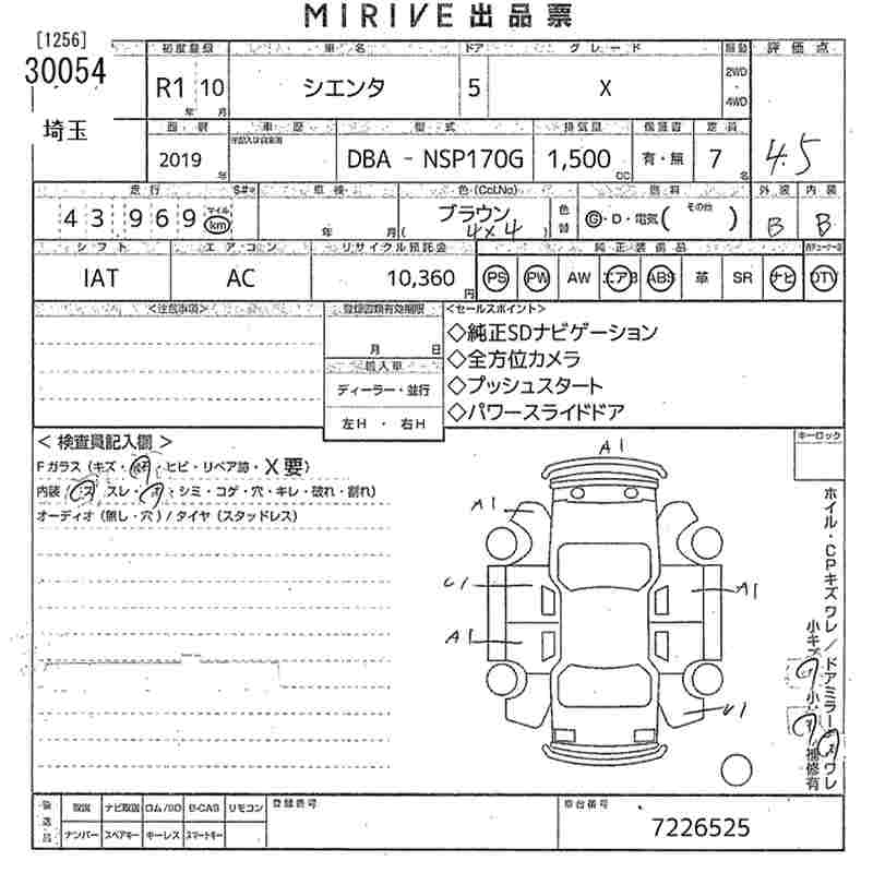 TOYOTA SIENTA - лот 30054