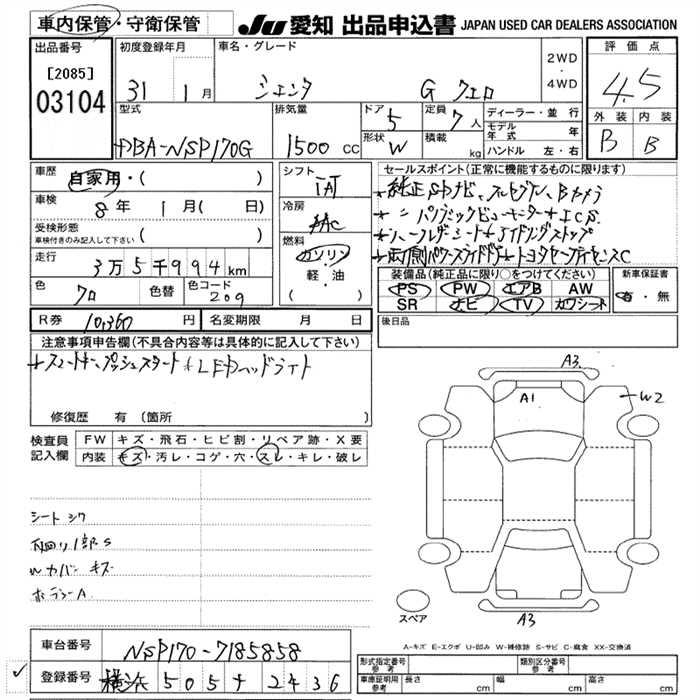 TOYOTA SIENTA - лот 3104
