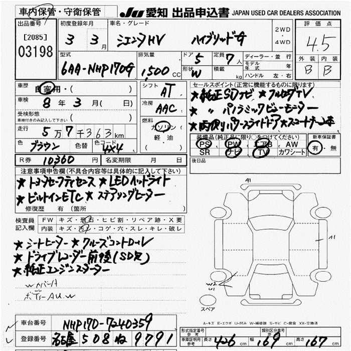 TOYOTA SIENTA - лот 3198