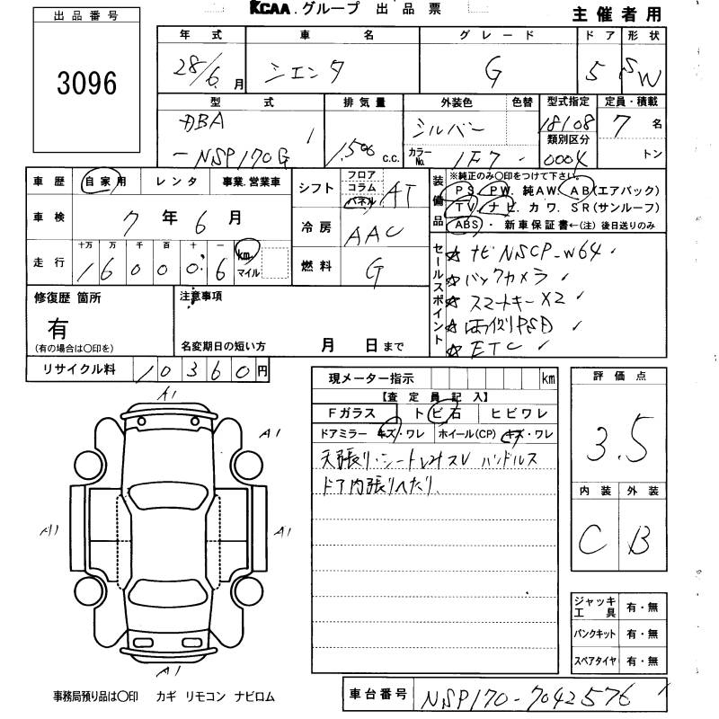 TOYOTA SIENTA - лот 3096
