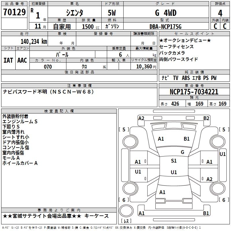 TOYOTA SIENTA - лот 70129
