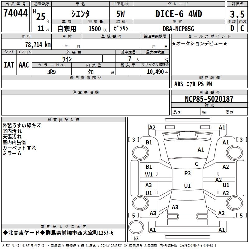 TOYOTA SIENTA - лот 74044