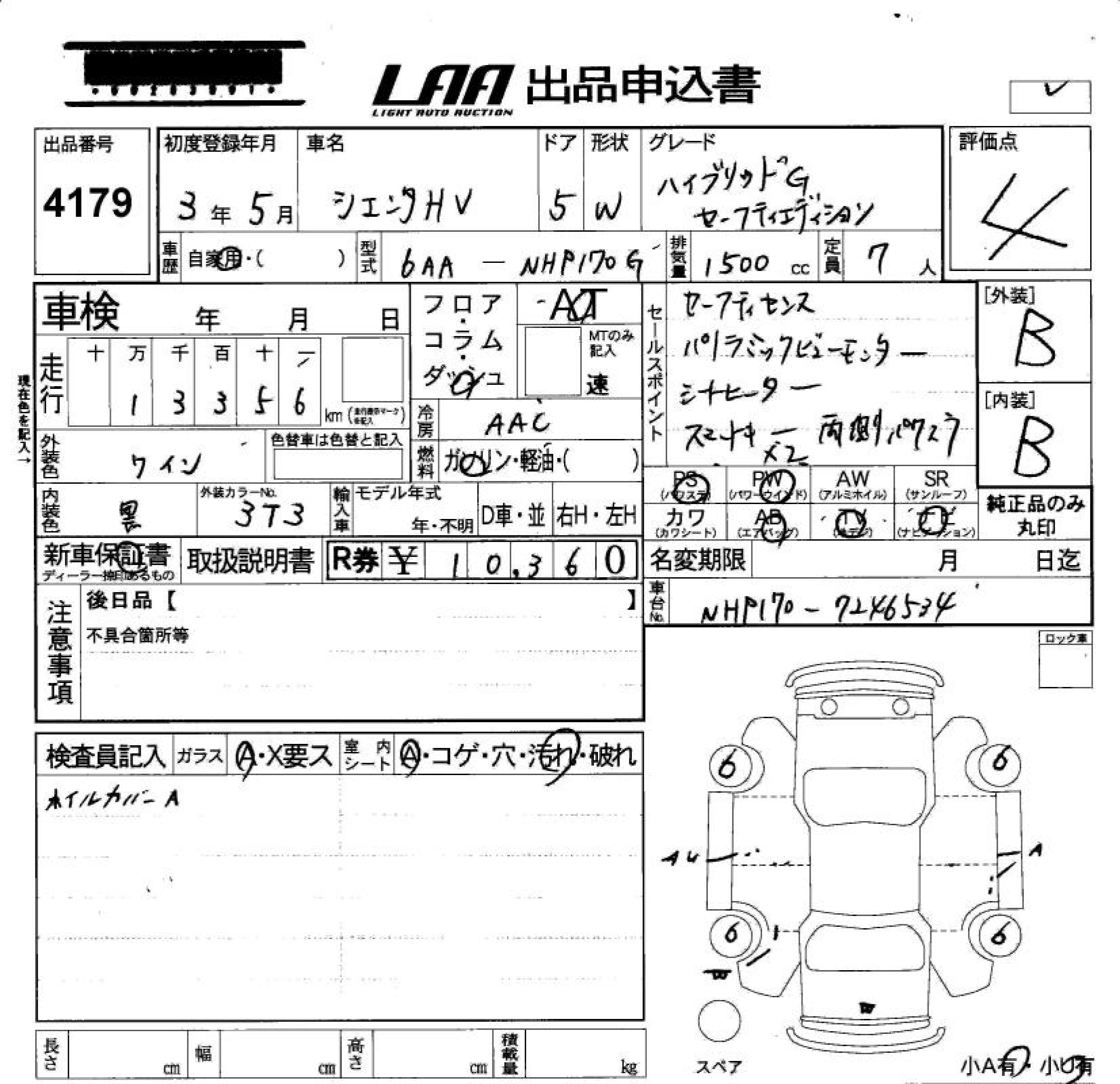 TOYOTA SIENTA - лот 4179