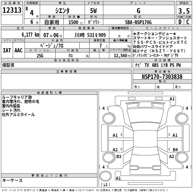 TOYOTA SIENTA - лот 12313