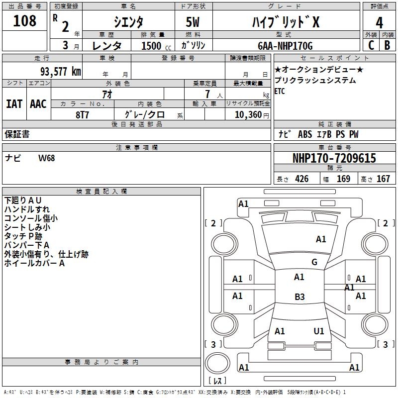 TOYOTA SIENTA - лот 108