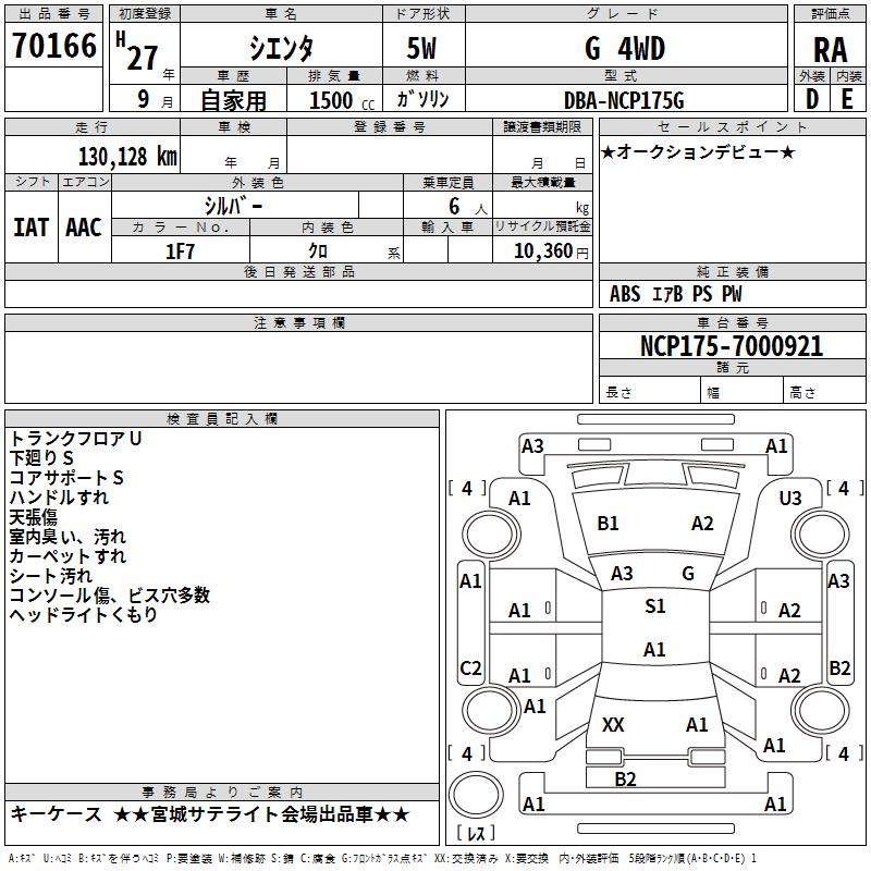 TOYOTA SIENTA - лот 70166