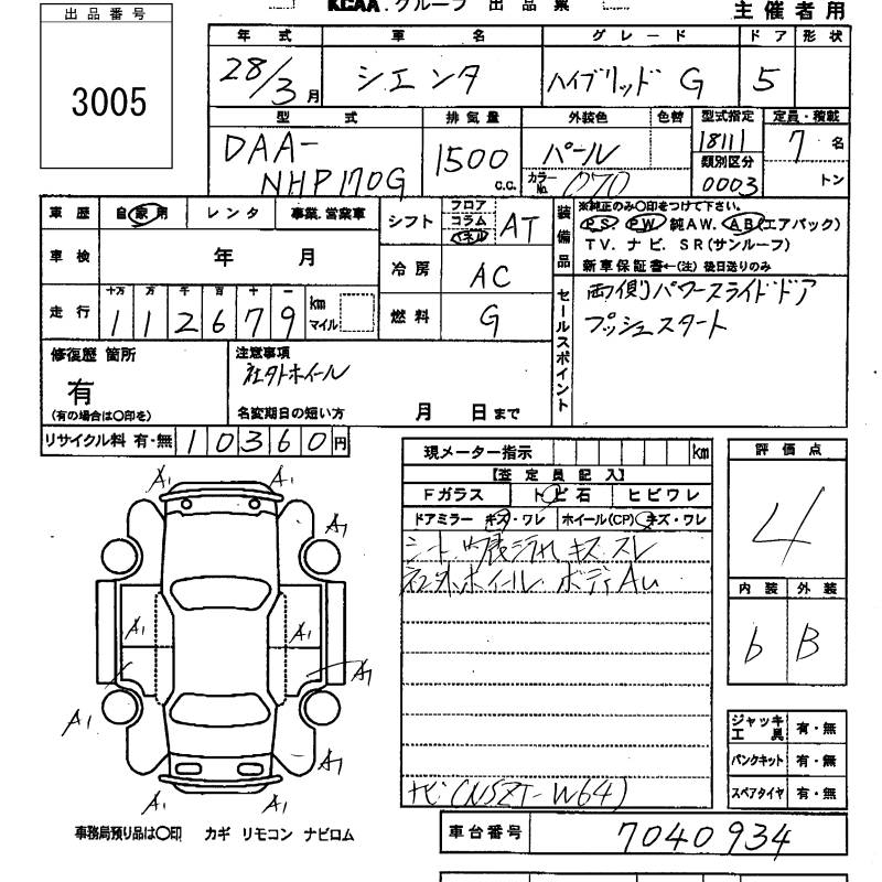 TOYOTA SIENTA - лот 3005