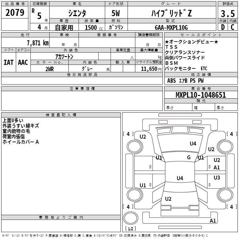 TOYOTA SIENTA - лот 2079