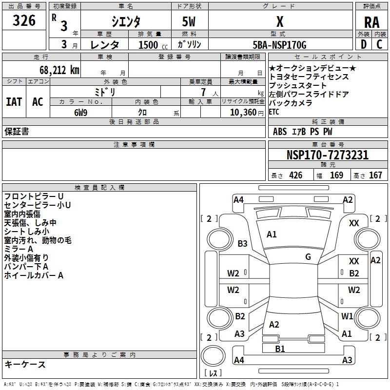 TOYOTA SIENTA - лот 326