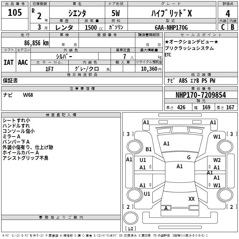 TOYOTA SIENTA - лот 105