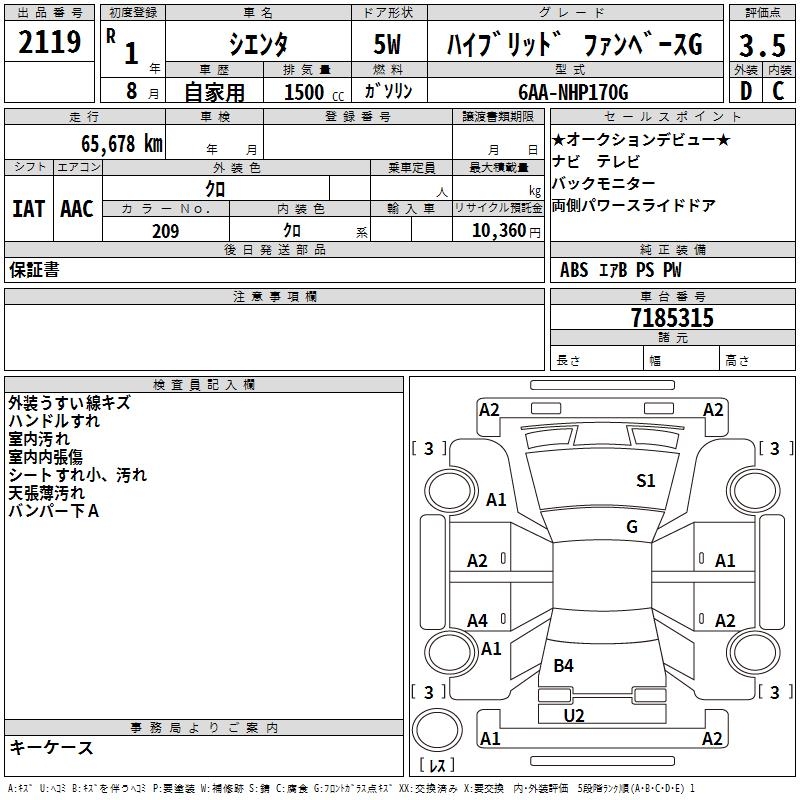 TOYOTA SIENTA - лот 2119