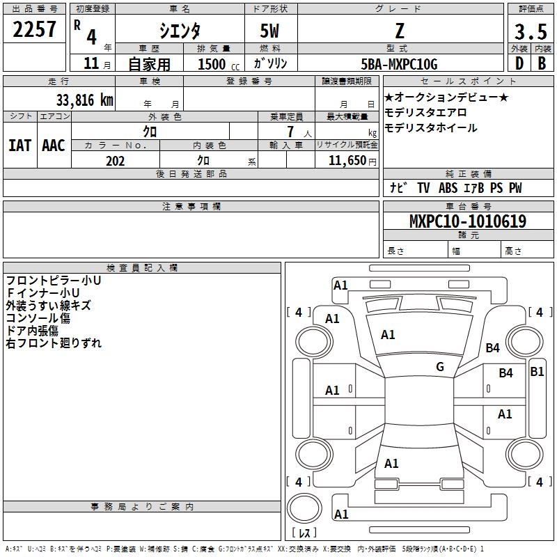TOYOTA SIENTA - лот 2257