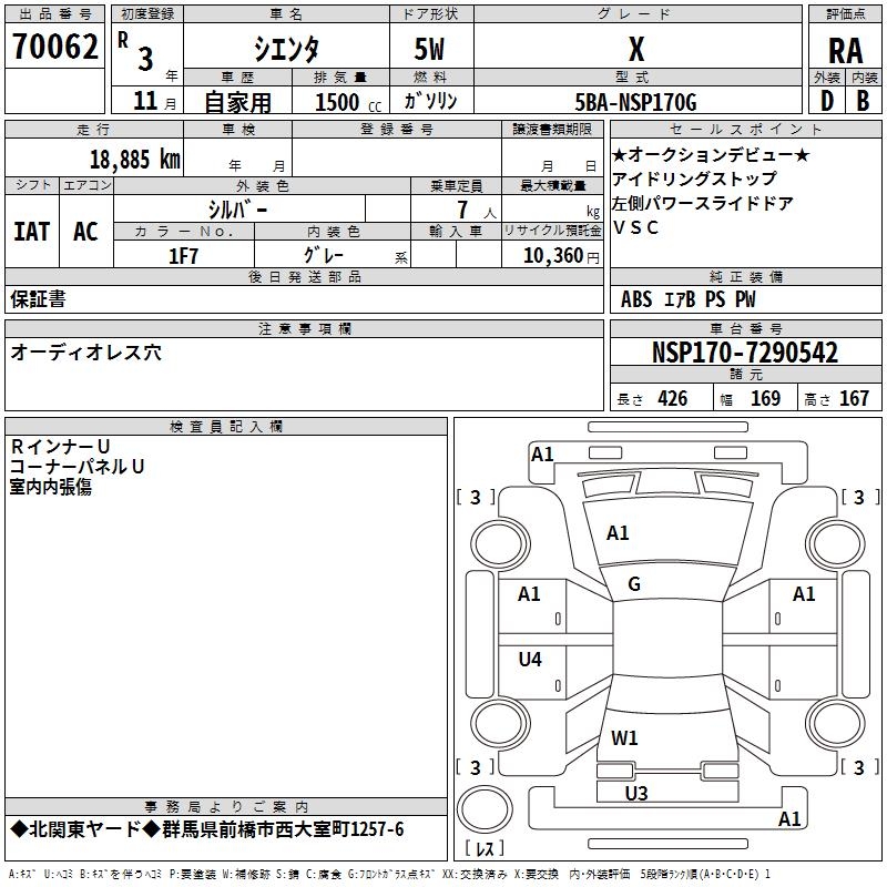 TOYOTA SIENTA - лот 70062